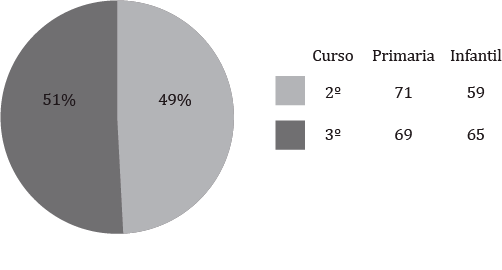El estudio se aplicó a un total de 264 sujetos de ambos sexos de la Facultad de Educación de la Universidad de Extremadura en Badajoz (España), alumnado matriculado en los cursos de 2º y 3º de los grados de Educación Primaria y Educación Infantil. La elección de estos cursos estuvo motivada por tratarse de los centrales de los grados, que dejan atrás prácticas académicas propias de secundaria o bachillerato; y también porque en estos cursos se imparten asignaturas obligatorias, sin la dispersión que originan los itinerarios de especialización ni las prácticas de enseñanza, concentradas en el curso 4°.