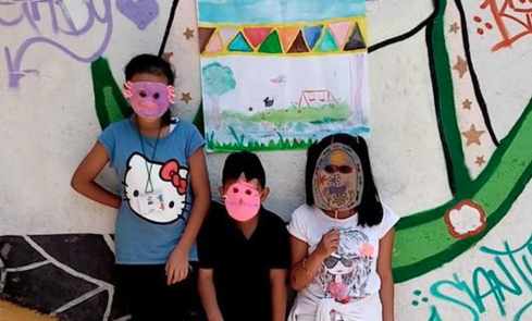 Curso de verano 2019. ¿Cómo nos gustaría que fuera la barranca en el futuro? Los dibujos que se realizaron en esta actividad son usados para la consulta del diseño participativo del espacio de recreación ecológica 2020; este espacio era identificado anteriormente como “basurero”. Foto: Estudio Abierto, AC.
