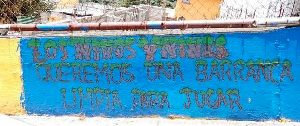 Los niños y los niñas queremos una barranca limpia para jugar. Curso de verano 2019. Mural pintado por niños y niñas. Foto: Estudio Abierto, AC.