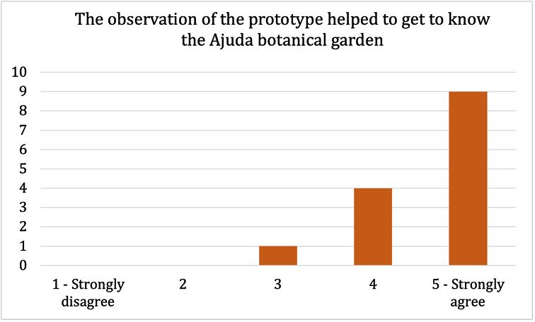 Figure 3. Answers from 23 students in the master’s classroom concerning the sentence “the observation of the prototype helped to get to know the Ajuda Botanical Garden”.
