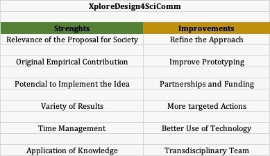 In the table 6, the author exposes a summary of her reflections, with the associated strengths and improvement suggestions for future actions.