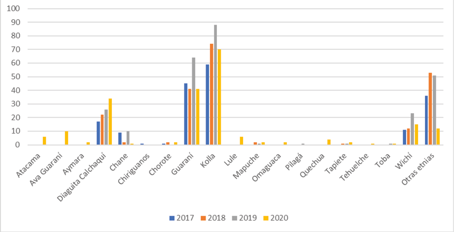 Gráfica 1. Pueblos indígenas en la UNSa, 2017-2020