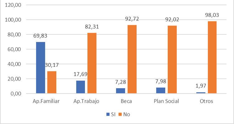 Las respuestas obtenidas dan cuenta de que la variable económica incidiría como uno de los condicionantes materiales que se presenta para permanecer y egresar del nivel superior universitario. De hecho, en el último tiempo se ha podido advertir que quienes transitaron y culminaron una formación universitaria en su mayoría son provenientes de sectores económicos desfavorecidos (Soriano y Ossola, 2022a). De modo particular, la población que alberga la UNSa se caracteriza, entre otros aspectos, por contar con estudiantes de niveles socioeconómicos medios y bajos (Ossola, 2015).