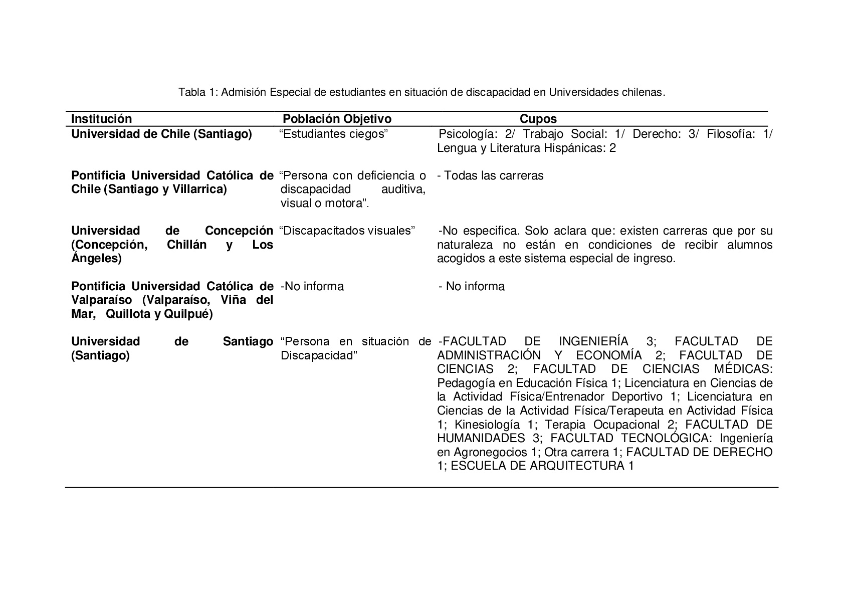 IESALC (2005). Informe final: integración de las personas con discapacidad en la educación superior en Chile. Recuperado de http://sid.usal.es/idocs/F8/FDO12677/integracion_educacion_superior_chile.pdf
