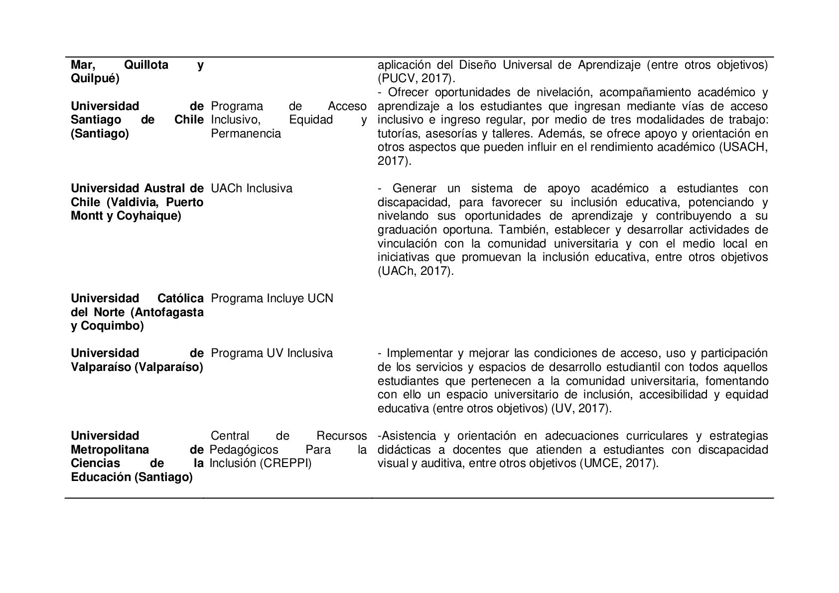Zuzulich, M. S., Achiardi, C., Hojas, A. M., y Lissi, M. R. (2014). Inclusión de estudiantes con discapacidad en universidades chilenas: mecanismos de admisión y recursos para su implementación. En Centro de Políticas Públicas UC (eds.). Propuestas para Chile. Concurso políticas públicas (pp. 55-88). Santiago, Chile: Salesianos Impresores.