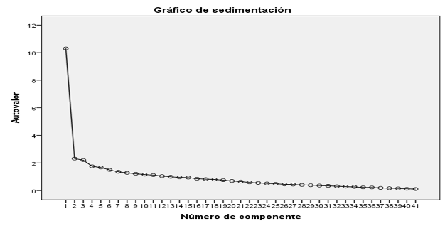Como pruebas condicionantes del AFE se encuentran la de Kaiser-Meyer-Olkin y la de esfericidad de Bartlett, cuyos resultados fueron .780 para el primer caso y .000 de significancia en el segundo, por lo que es pertinente proceder con el análisis (Méndez y Rondón, 2012).