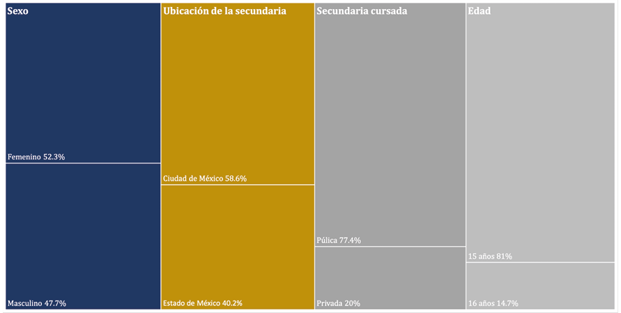 Entender la configuración del subsistema de bachillerato que conforma la UNAM implica reconocer el perfil de la población que la distingue de otras instituciones y, por tanto, su relación con el conjunto del SEMS. La figura 3 recupera algunos datos que ilustran quiénes son los alumnos en este nivel educativo.