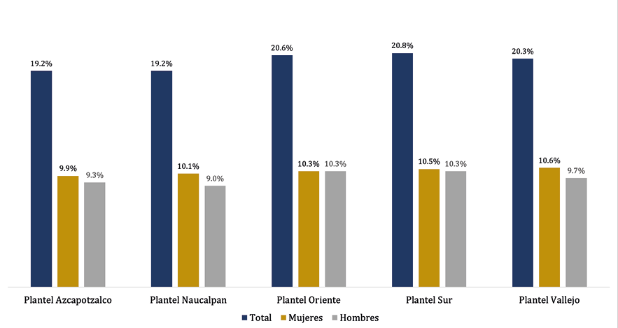 En cuanto al tamaño y representatividad de la muestra de bachillerato, esta fue estadísticamente representativa de la población del subsistema (para más detalles consultar el apartado metodológico en CUAIEED, 2021). En cada caso se hizo una limpieza de la base de datos para eliminar valores perdidos, inconsistencias en las respuestas o valores atípicos. Para el personal docente, se recabaron un total de 854 respuestas válidas, de las cuales 505 fueron de docentes de la ENP y 349 de CCH. En tanto, del estudiantado alcanzaron 9,285 respuestas, de las cuales 5,413 corresponden a estudiantes de la ENP y 3,872 del CCH.