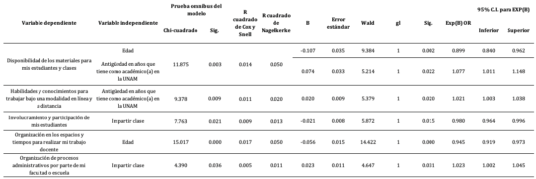 Tabla 3. Análisis de regresión logística binaria de las problemáticas identificadas por docentes