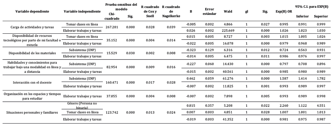 Tabla 4. Análisis de regresión logística binaria de las problemáticas identificadas por estudiantes