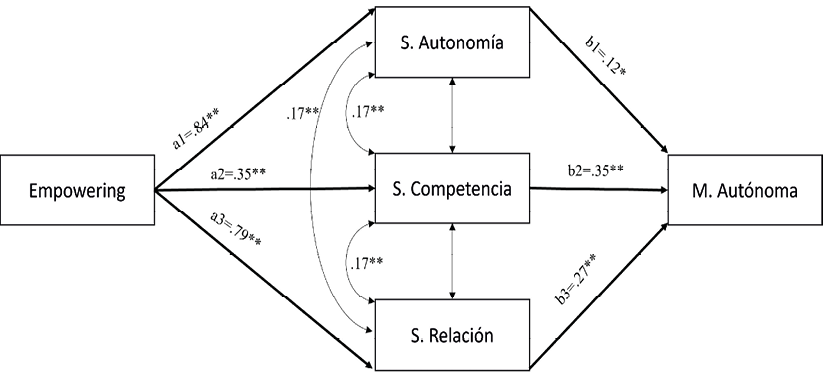 Figura 1. Modelo clima empowering –satisfacción de las tres NPB–, motivación autónoma.